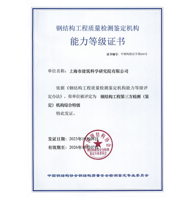 • 鋼結構工程第三方檢測(鑒定)機構綜合特級