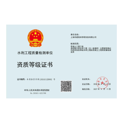 • 水利工程質量檢測資質 混凝土工程乙級