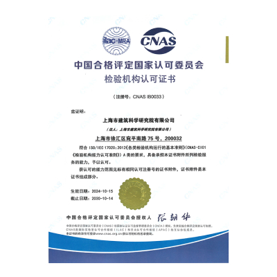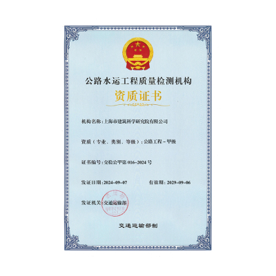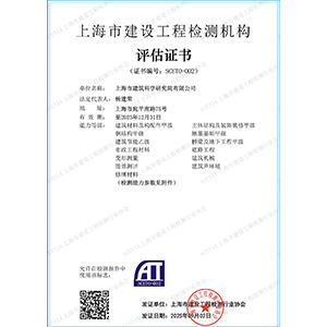 • 上海建設工程檢測評估證書