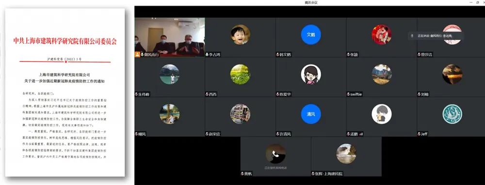 疫情當前,使命在肩。在上海建科集團黨委堅強領導下,上海市建筑科學研究院有限公司積極響應集團倡議,黨政工團協(xié)同聯(lián)動,組織帶領廣大干部職工,緊緊凝聚在黨旗之下,眾志成城,為堅決打贏這場新冠疫情阻擊戰(zhàn)貢獻力量。