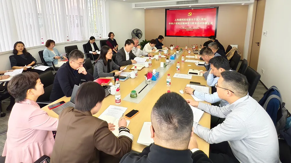 建科院黨委書記、執行董事楊建榮對學習教育提出工作要求,黨委副書記、總經理趙榮欣解讀上海建科院深入學習貫徹中央八項規定精神學習教育實施方案,張蓓紅傳達了集團黨委深入貫徹中央八項規定精神學習教育的部署要求。