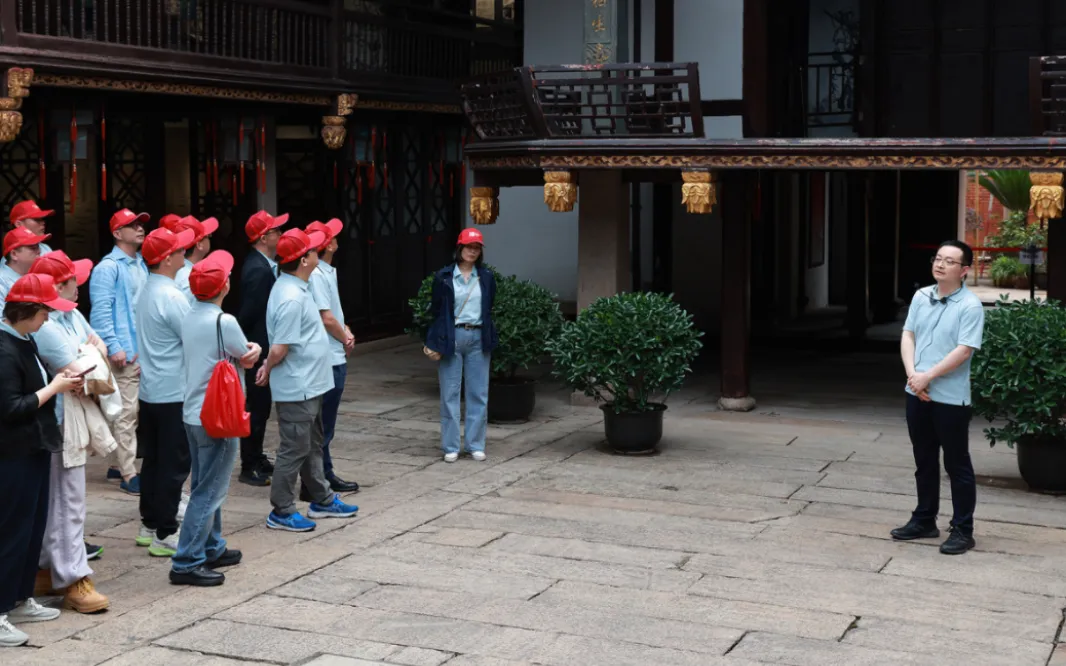 全體人員在上海三山會館參觀了上海工人第三次武裝起義史料展和上海會館史陳列館。建設部先進工作者、建科院李占鴻介紹了三山會館的歷史沿革和建筑特色,詳細講解了建科院團隊運用數(shù)字化新技術(shù)對會館開展自動化監(jiān)測,以保障文物建筑在周邊工程施工中的安全的有關(guān)情況。