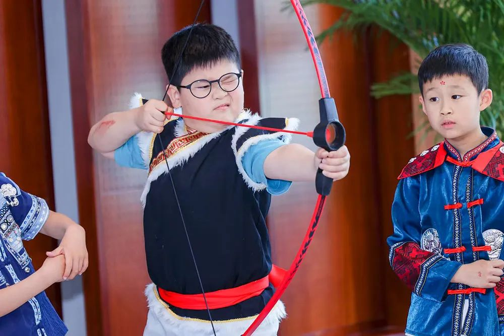 錫伯族射箭區的小勇士們拉弓瞄準,箭矢破空的聲響傳遞著古老的競技精神;維吾爾族手鼓體驗區,家長與孩子們跟隨老師拍擊出“咚”、“嗒”、“嘟”的韻律,鼓點與歡笑交織成章;黎族竹竿舞體驗區,小姑娘們拎起裙擺輕盈躍動,化身跳躍的音符穿梭于竹竿開合間。