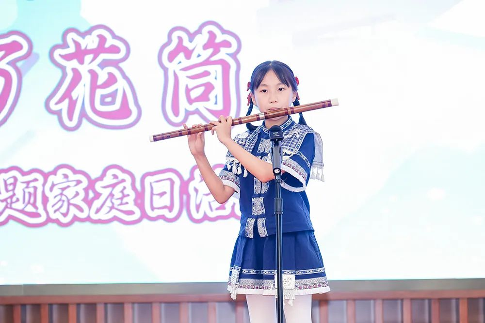 陳蘊諾小朋友一曲竹笛獨奏《帕米爾的春天》,悠揚笛聲如雪山清泉流淌,塔吉克風情躍然耳畔。隨后,全場家庭手拉手跳起《愛我中華》集體舞,高亢的旋律中,歡聲笑語化作團結友愛的海洋。