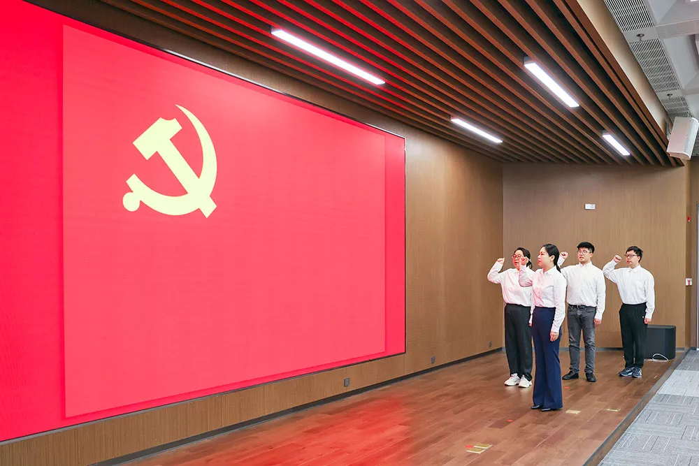 重溫入黨誓詞既是為新黨員扣好政治生涯的“第一粒扣子”,也是為全體黨員再一次校準思想坐標、筑牢信仰之基。共有3名新晉黨員宣誓,全體黨員重溫初心。
