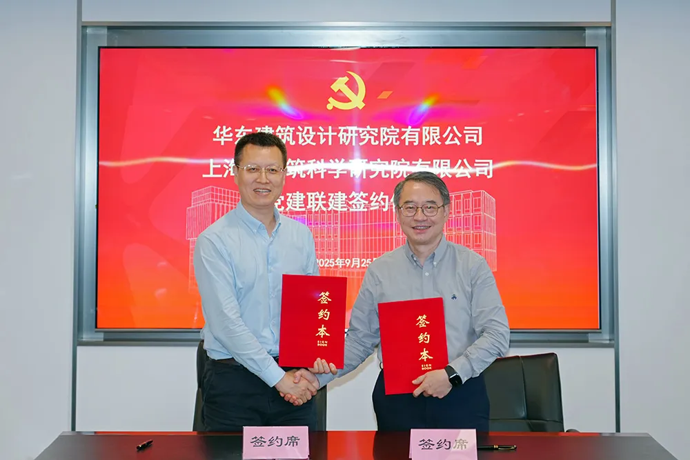 楊建榮、姚激分別代表建科院黨委與華東院黨委簽署黨建聯建協議。本次簽約旨在進一步深化雙方共建互聯機制,通過強化黨建引領作用,推動資源共享、優勢互補,實現攜手共進、互利共贏的合作目標,為雙方長期協作奠定堅實基礎。
