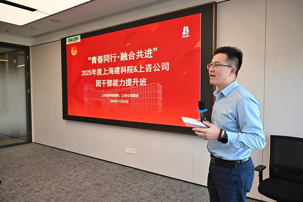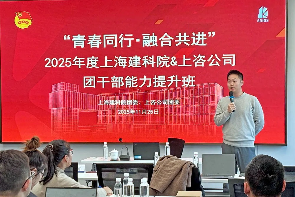 11月25日,上海市建筑科學研究院有限公司(以下簡稱“建科院”)團委與上海投資咨詢集團有限公司團委聯合舉辦“青春同行·融合共進”2025年度團干部能力提升班。上海建科咨詢集團團委書記周子杰,建科院黨委副書記、紀委書記、工會主席張蓓紅,上咨公司黨委副書記、紀委書記、工會主席莊國方出席本次活動。40余名團干部參加本次培訓。