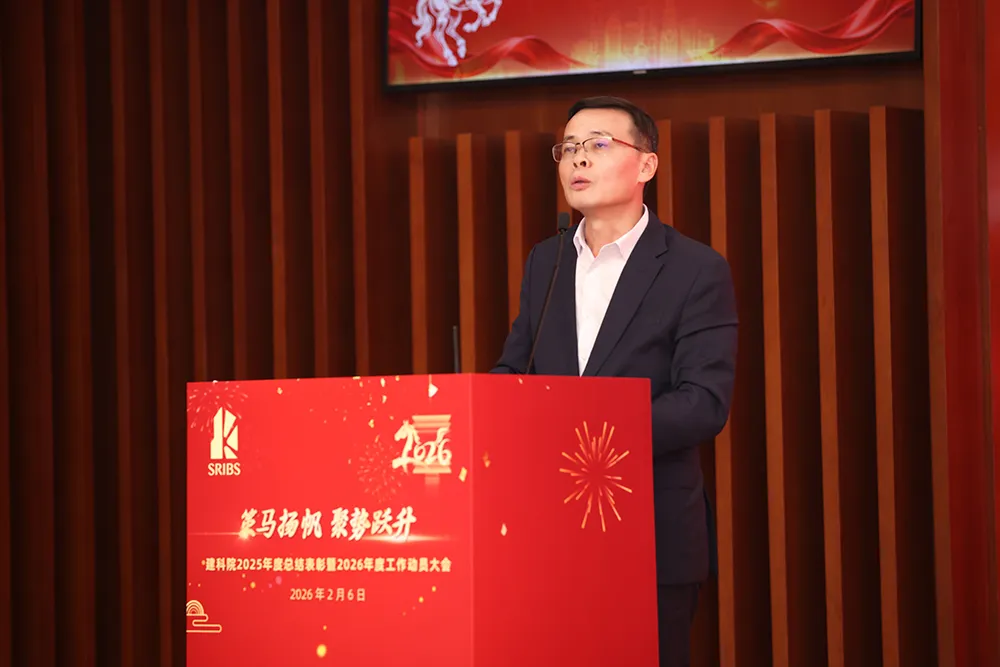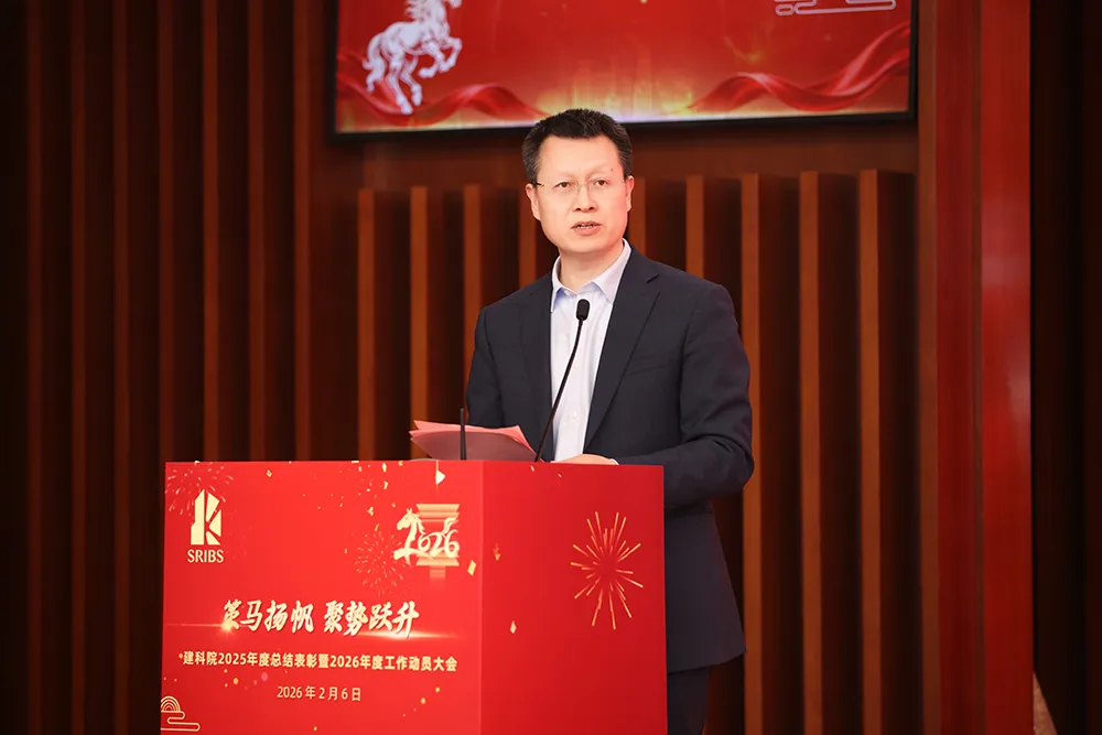 建科院黨委書記、董事楊建榮講話并作工作動員。他指出,2025年建科院以“破局 煥新 深耕 奉獻”為脈絡,乘戰略、創新、品牌之勢,依托全院員工的不懈拼搏,斬獲多項行業認可,不斷擴大行業聲量,為未來發展積蓄強勁動能。展望2026年,建科院將在行業浪潮中堅定政治引領,錨定戰略方向,聚焦四大產業方向,以創新、產業、協同固本筑基,持續以砥礪拼搏、勇爭一流的奮進姿態,全力邁向高質量發展新征程。