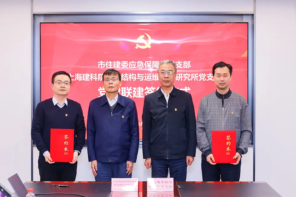 在洪繼梁、周紅波的共同見證下,市住建委應急保障處黨支部與建科院建筑結構與運維安全研究所黨支部簽訂《黨建聯建協議書》,明確將在組織共建、理論共學、業務共促、人才共育等方面深化合作,重點圍繞自建房安全排查整治、風險評估等領域開展深入協作,推動黨建與業務同頻共振。