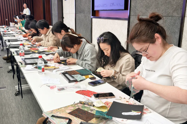 3月3日,莘莊園區(qū)的非遺手作體驗活動溫情啟幕。女職工們化身“手作匠人”,沉浸式體驗傳統(tǒng)工藝的獨特魅力。以精致宋錦為底,將圓潤珍珠精心拼貼,勾勒出駿馬奔騰的靈動畫卷;把五彩螺鈿片巧妙鑲嵌于相框,在光影流轉間,讓每一件作品都綻放出流光溢彩的絕美質感。穿針引線間,是耐心與專注的交融;精雕細琢中,是對傳統(tǒng)文化的熱愛與傳承。
