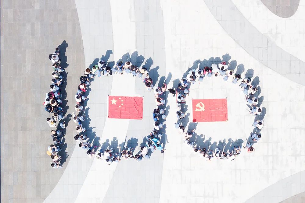 上海建科院員工及子女集體站位航拍建黨100周年logo,獻(xiàn)禮建黨百年。