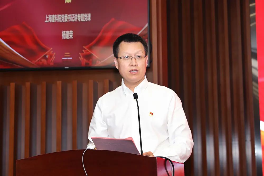建科院黨委書記、執行董事楊建榮以《保持定力提振信心,砥礪奮進勇毅篤行》為題為建科院全體黨員上了一堂生動的專題黨課。他指出,建科院全體員工面對疫情,顧全大局、迎難而上,挺身而出、義無反顧,在與疫情賽跑、與艱難抗爭的大上海保衛戰中盡顯建科精神和建科擔當。在全面復工復產后,全體黨員要充分認識到后疫情時期的艱巨任務,立足崗位,圍繞復工復產和全年工作目標持續推進,補短板、保目標,全力追回被疫情奪去的時間,打贏發展“攻堅戰”。他號召,全體黨員要提高站位,以奮斗之姿,用實際行動迎接黨的二十大勝利召開。各支部要繼續發揚奮勇向前的“防疫精神”,苦練內功,以昂揚斗志提升管理助力改革發展。