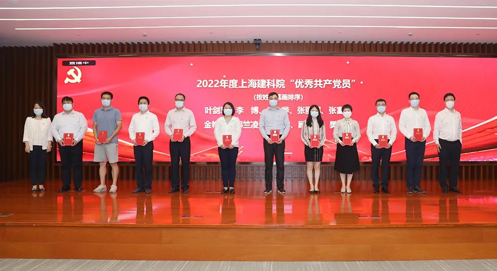 建科院黨委副書記、紀委書記、工會主席張輝宣讀了建科院表彰決定,授予應曄等10位同志“優秀共產黨員”稱號;建科院城市更新與工程設計研究所黨支部等5個黨支部“先進基層黨組織”稱號。建科院黨政領導班子成員分別向獲得表彰的先進集體代表和個人頒獎。