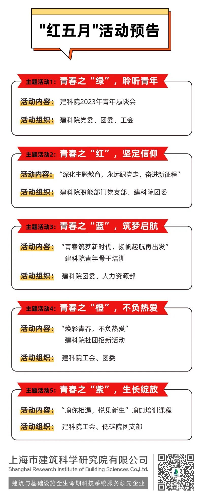 在“五四”到來之際,上海市建筑科學研究院有限公司黨工團聯合推出“活力五月”系列主題活動,以青年之力,續五四之光!以活力建設,助力企業發展!