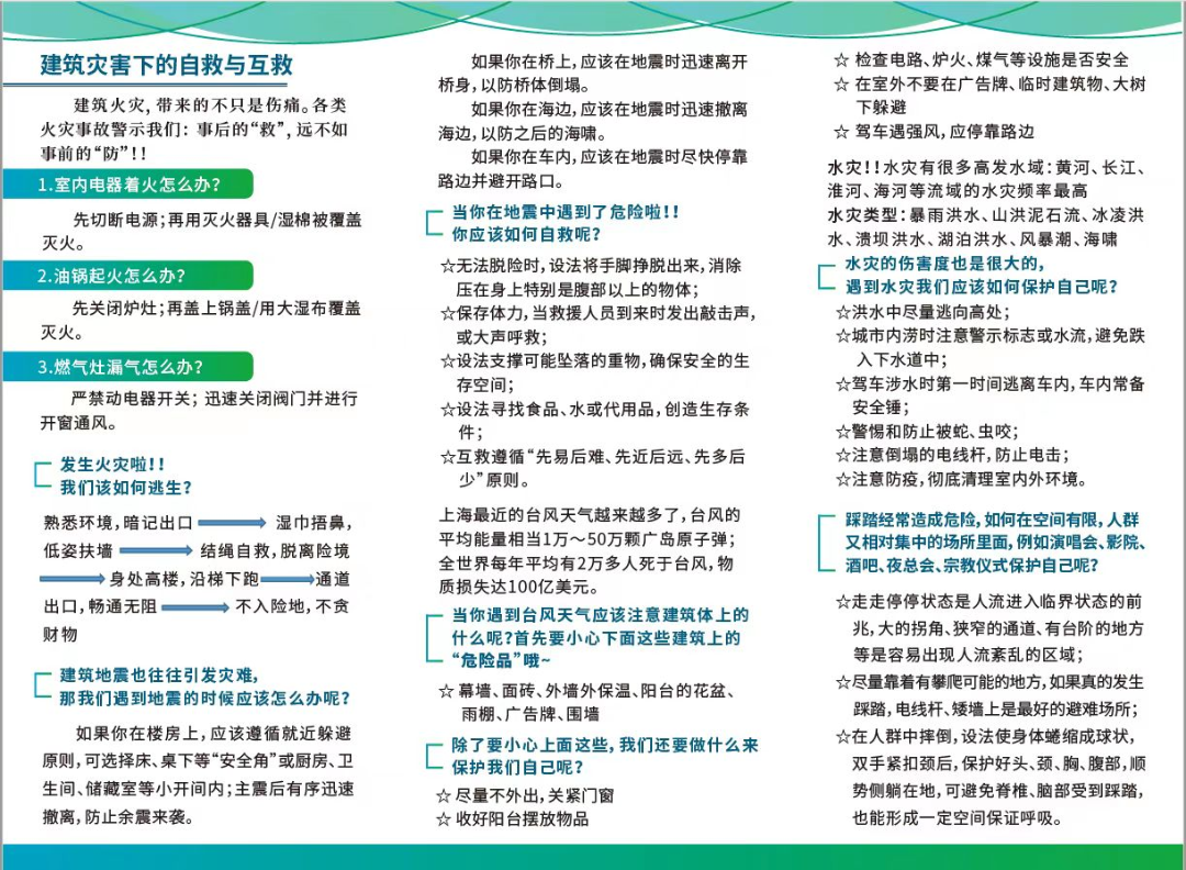 “建筑災害下的自救與互救”專題科普,介紹了火災、地震、恐怖襲擊、踩踏、風災、水災等災害對建筑帶來的危害,仔細講解了不同災害下的各種自救與互救辦法,并特別為各位同學總結了一些容易記憶的逃生口訣,比如:在火災時要“視金錢如糞土”,如果身上著火必須“連滾帶爬”,逃生時注意“用濕毛巾捂住口鼻”;在地震時應該保護頭部,被困時也要堅定信念等待救援。講解針對受眾進行形象生動的演繹,過程中,參加活動的小學生們踴躍回答問題,積極參與討論。