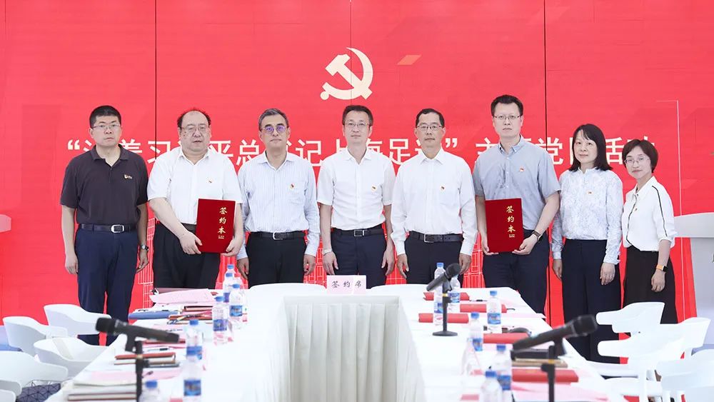 在楊浦濱江綠之丘的“新時代上海互聯網企業黨建創新實踐基地”,聯建各方開展了座談交流暨黨建聯建協議簽訂儀式。孫堅、楊建榮分別代表市住建委節能建材處黨支部和市建科院黨委在共建協議書上簽字,季權、陳寧、李向民等共同見證。