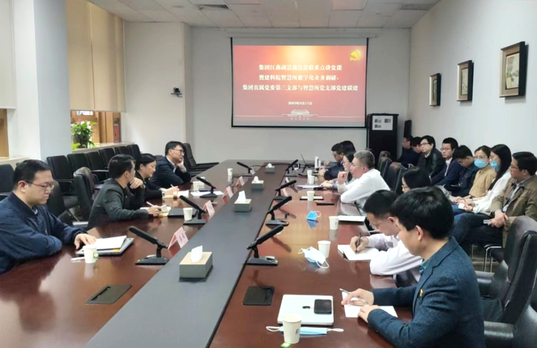 5月11日下午,上海建科集團副總裁江燕帶隊,赴上海市建筑科學研究院有限公司智慧城市與數字技術研究所黨支部講授主題教育專題黨課并調研數字化轉型工作。集團副總工程師樊鈞,建科院黨委副書記、總經理趙榮欣,集團科技創新部(信息技術部)等參加會議。