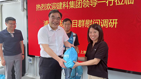 集團黨委副書記、總裁朱雷,集團副總裁、財務總監(jiān)沈新根一行前往工程咨詢公司21066項目、浦東機場項目以及檢驗公司浦東機場實驗室進行調研慰問。
