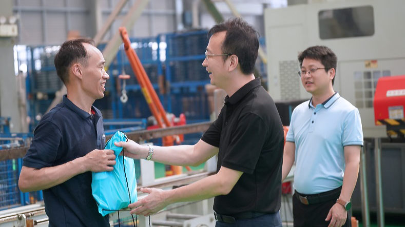集團領導與一線職工們親切交談,為職工們送上高溫慰問品,并強調要進一步落實好安全生產(chǎn)責任,把防暑降溫工作和安全工作相結合,從項目建設安全和職工的身心健康兩方面考慮,保障項目建設安全有序開展,更好推進項目高質量建設工作。