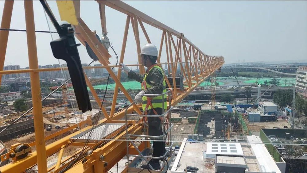 機械檢測中心團隊頂烈日、攀高塔、查隱患,在臨港、青島、啟東各地建筑工地現場,對大型起重機械以及多種類大檢查項目進行檢驗檢測。他們在“5+2”的工作模式下持續進行塔式起重機等機械設備安全性能檢測,為全國建設工程設備安全運行貢獻自己的力量。