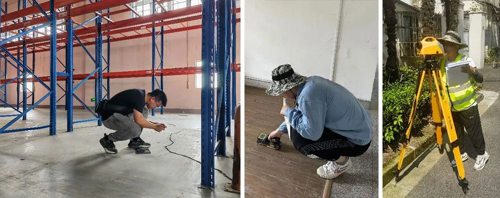 結構所房檢團隊冒著烈日酷暑奔波在全市各個區縣開展現場檢測工作。在普陀區長壽地區C060101單元A5-6地塊小學新建工程施工前周邊房屋現狀檢測項目、松江區上海城市科技學校房屋檢測、奉賢區金匯路某倉庫工程質量檢測等項目中,他們與器械為伍、與烈日相伴,用熱情抵抗高溫酷暑,開展現場踏勘、房屋檢測、變形檢測等工作,用嚴謹細致的工作確保高質量的檢測成果。