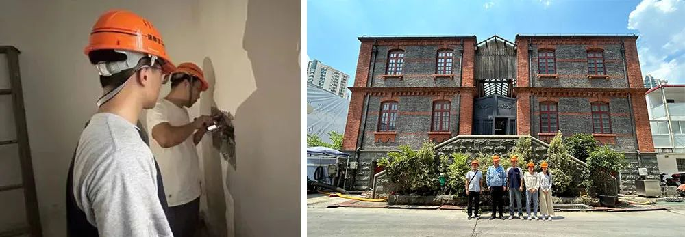 更新所評估咨詢中心團隊冒酷暑、戰高溫,在入伏的第二天前往莫干山路120號對四幢優秀歷史建筑進行質量綜合檢測工作。檢測人員在烈日下考證房屋特色部位工藝做法,在空置已久、密閉的房間內,不畏高溫與蚊蟲,仔細調查外飾面材質、材性強度等,為后續修繕提供詳細基礎資料,推進項目進程。