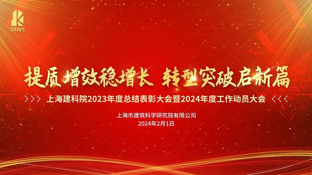 2月1日,上海市建筑科學研究院有限公司“提質增效穩增長 轉型突破啟新篇”2023年度總結表彰暨2024年工作動員會在莘莊10號樓三樓報告廳舉行。上海建科集團總工程師周紅波,建科院領導班子、監事全體出席會議。各研究所班子、職能部門主要負責人及部分員工代表到場參會,各滬外區域及一線員工同步觀看了會議視頻直播。