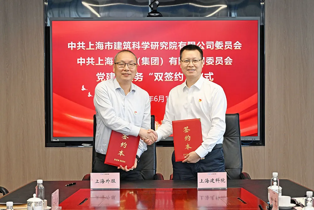 上海外服與上海建科院黨政主要領導在大家共同見證下,簽署了《黨建共建協議》和《全面框架合作協議》,進一步深化雙方黨建與業務融合發展。