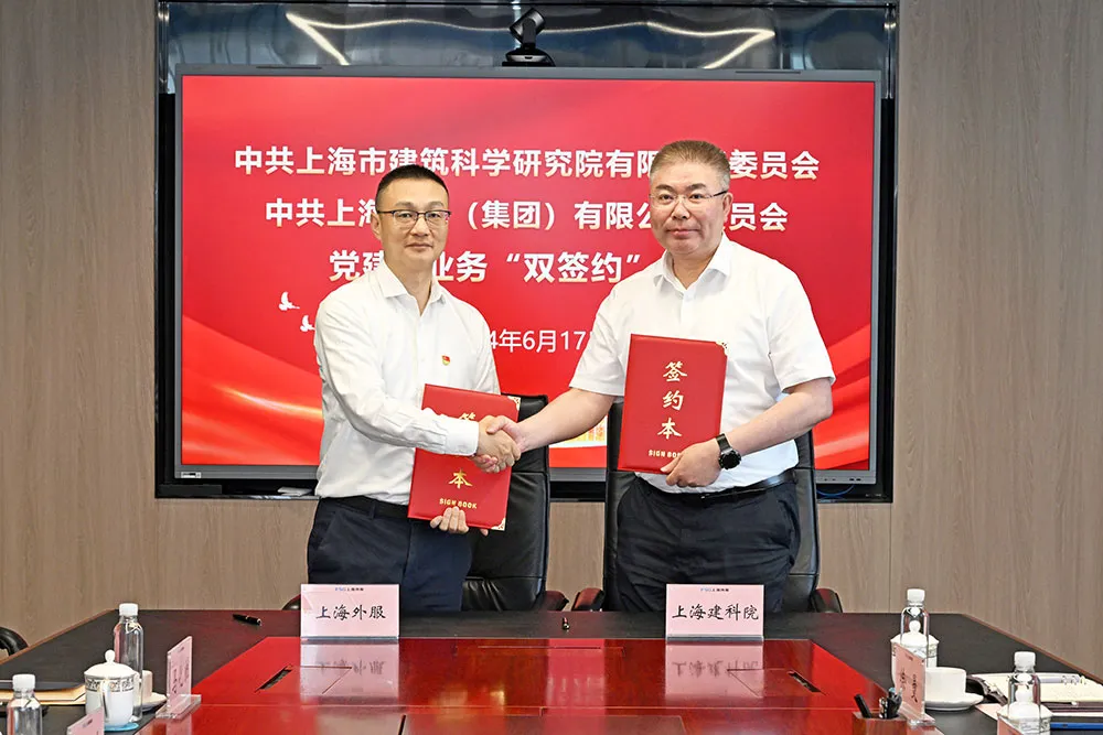 6月17日,上海外服(集團)有限公司黨委與上海市建筑科學研究院有限公司黨委開展黨建+業務“雙簽約”活動。上海外服黨委書記、董事長、總裁陳偉權,黨委副書記、常務副總裁朱海元,黨委副書記、工會主席夏海權,上海建科院黨委書記、執行董事楊建榮,黨委副書記、總經理趙榮欣,黨委副書記、紀委書記、工會主席張蓓紅出席本次會議。雙方相關職能部門、子公司負責人參會。會議由夏海權主持。