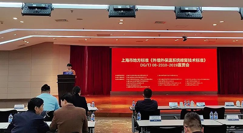 上海市建筑建材業市場管理總站副科長王玉蘭代表標準管理部門,介紹了標準的編制歷程,指出編制組進行了大量的試驗和反復論證,確保了標準的科學性、可操作性和適用性。該標準為外墻外保溫系統的空鼓、開裂、滲漏和脫落等質量缺陷的有效治理,提供了技術支撐,對規范外墻外保溫系統修復、延長外墻外保溫系統使用壽命,以及提高建筑物使用安全和節約資源,具有重要意義。