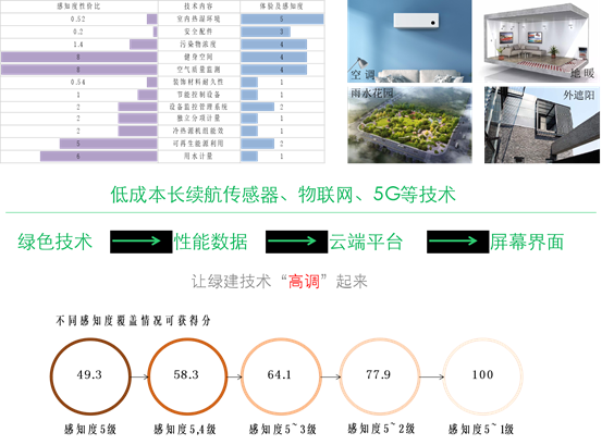 本報(bào)告從感知度角度,對(duì)綠色建筑的所有技術(shù)條文進(jìn)行了遍歷分析,為綠色建筑條文進(jìn)行了從1-5星的打分(5星最高),并基于感知度和投資增量分析了可感知度的性價(jià)比。本研究獨(dú)特的視角為開(kāi)發(fā)建設(shè)單位合理設(shè)計(jì)用戶體驗(yàn)并確定投資范圍具有直接的指導(dǎo)價(jià)值,為促進(jìn)綠色建筑的市場(chǎng)認(rèn)可和良性互動(dòng)具有積極作用。