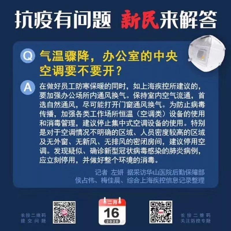 人員密集場所應暫停使用集中空調通風系統;非公共場所需要繼續使用集中空調通風系統的,應定時對集中空調系統進行清洗、消毒;其他需繼續使用集中空調通風系統的場所宜全新風運行。
