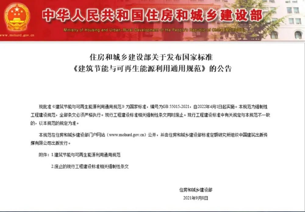 2021年10月13日,住建部正式發(fā)布了國(guó)家強(qiáng)制性標(biāo)準(zhǔn)《建筑節(jié)能與可再生能源利用通用規(guī)范》(GB55015-2021),自2022年4月1日起實(shí)施。“雙碳”可持續(xù)理念逐漸融入“規(guī)劃、開發(fā)再到運(yùn)營(yíng)”的房地產(chǎn)全生命周期中,相關(guān)政策助推建筑低碳轉(zhuǎn)型。