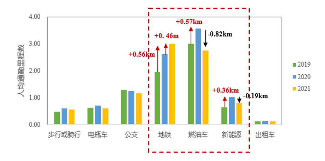 近3年各通勤方式人均里程數