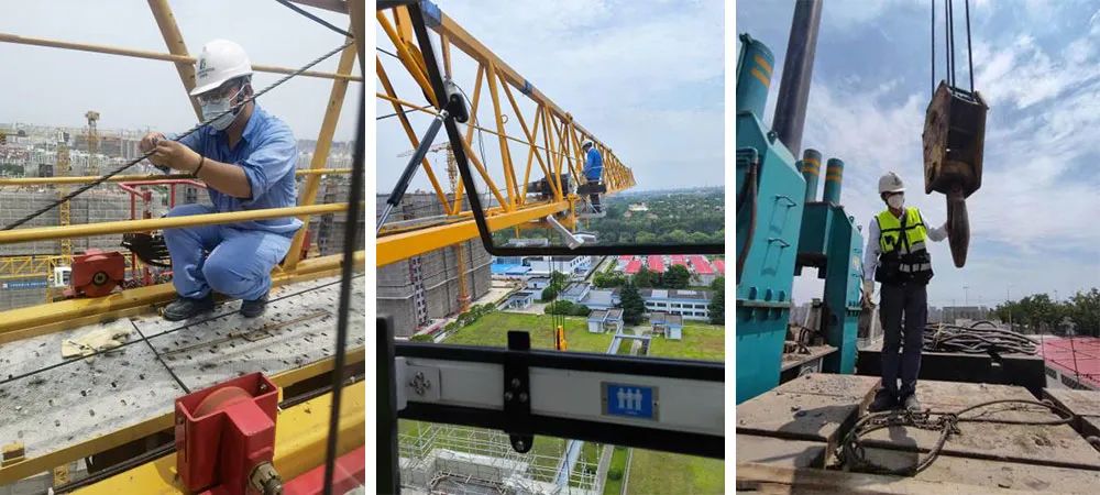 建科院機械檢測團隊戰高溫、不畏酷暑,奮斗在臨港新片區大型起重機械使用評估及關鍵節點檢查及各區大檢查項目等現場。為確保項目進度,他們“5+2”持續在太陽的暴曬下進行塔吊等機械設備安全性能檢測,確保建設工地機械設備的正常運作。