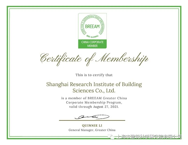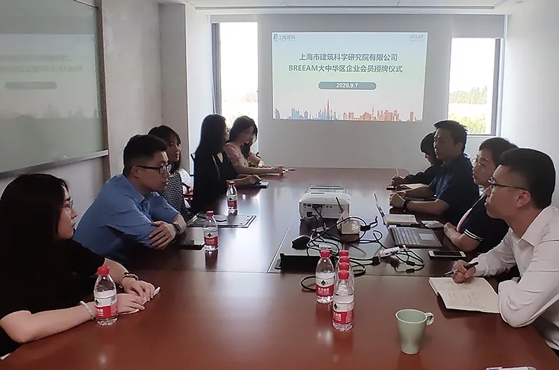 2020年9月7日,英國建筑研究院中國分院總經(jīng)理李倩女士一行到訪上海建科莘莊科技園區(qū),向上海市建筑科學(xué)研究院有限公司頒發(fā)了BREEAM大中華區(qū)企業(yè)會員證書。上海市建筑科學(xué)研究院有限公司綠色建筑與低碳發(fā)展研究所所長張穎、副所長季亮及院市場部相關(guān)人員等參加了此次授牌儀式,并與英國建筑研究院中國分院總經(jīng)理李倩女士等一行圍繞技術(shù)研發(fā)和市場拓展進(jìn)行了合作交流。