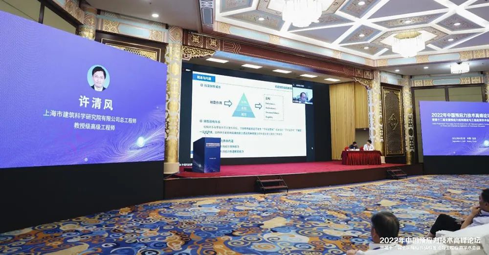 2022年9月3日,由中國(guó)工程院土木、水利與建筑工程學(xué)部主辦,北京科技大學(xué)、中國(guó)鋼結(jié)構(gòu)協(xié)會(huì)、中國(guó)工程建設(shè)標(biāo)準(zhǔn)化協(xié)會(huì)、中冶建筑研究總院有限公司和《工業(yè)建筑》雜志社有限公司承辦的“2022中國(guó)預(yù)應(yīng)力技術(shù)高峰論壇暨第十二屆全國(guó)預(yù)應(yīng)力結(jié)構(gòu)理論與工程應(yīng)用學(xué)術(shù)會(huì)議”在北京友誼賓館舉行,27名院士、近300位國(guó)內(nèi)外專家學(xué)者參加了本次論壇,1萬(wàn)余人參與了線上互動(dòng)。上海市建筑科學(xué)研究院有限公司總工程師許清風(fēng)受邀參會(huì)并作大會(huì)報(bào)告。
