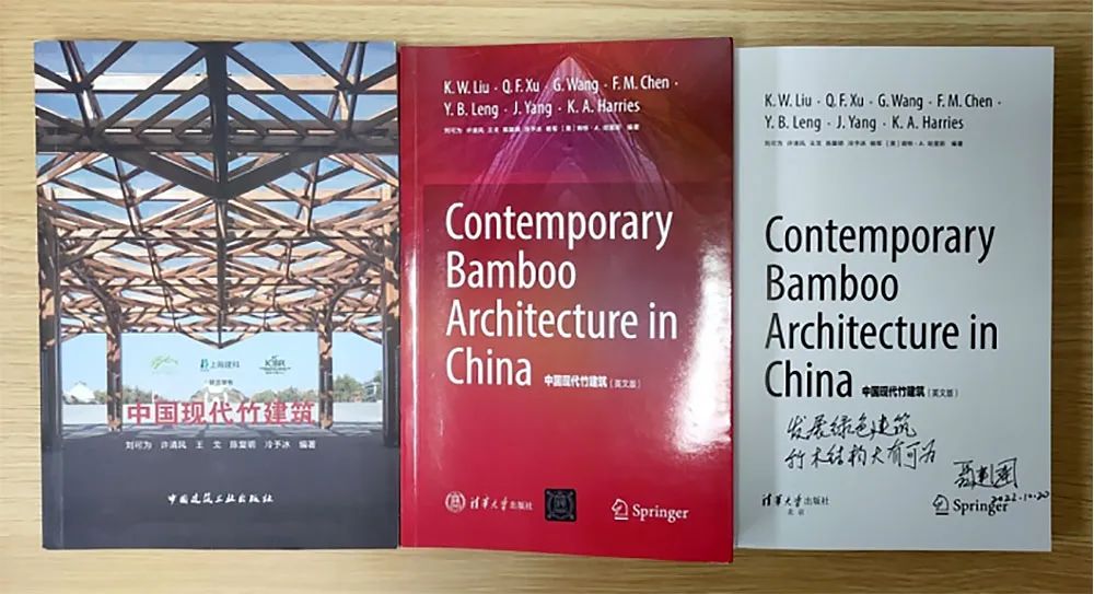 會議開幕式上,舉行了由國際竹藤組織、上海建筑科學研究院有限公司、國際竹藤中心、清華大學和匹茲堡大學專家共同編著的《中國現代竹建筑》(英文版)新書發布儀式。該書在2019年中文版基礎上進行了內容更新,融入了更多中國精彩建筑案例,于今年4月由清華大學出版社和施普林格出版社在海內外聯合發布。中英文版《中國現代竹建筑》均得到中國工程科技中長期發展戰略研究領域戰略研究項目“面向2035的中國竹建筑工程發展戰略和關鍵技術研究” 支持。杜睿、王戈、石永久、宋曄皓、劉可為、王任飛等參編單位代表和作者出席了國際竹藤組織北京總部新書發布儀式,作者許清風、冷予冰、楊軍和肯特·哈瑞斯線上出席。