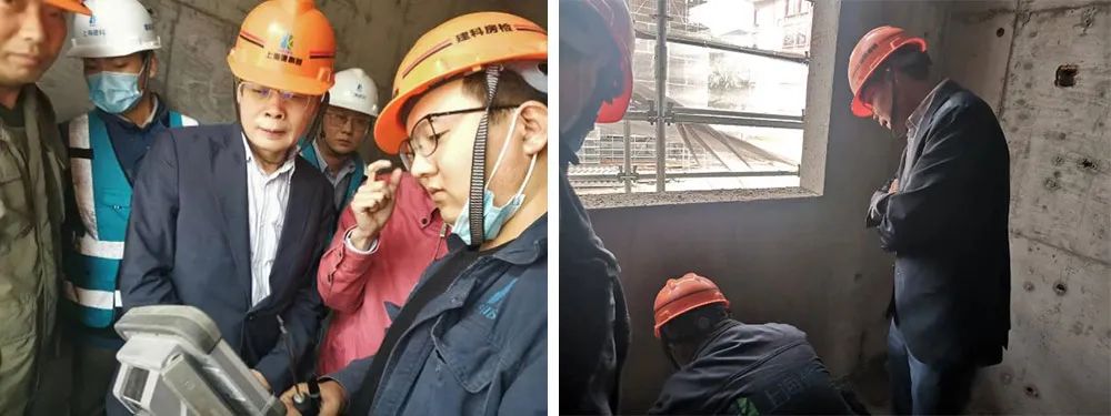 聽取了項(xiàng)目情況匯報(bào)后,周紅波帶隊(duì)到項(xiàng)目檢測(cè)現(xiàn)場(chǎng)進(jìn)行調(diào)研,并與建科院檢測(cè)人員就套筒和盲孔灌漿飽滿性檢測(cè)技術(shù)、抽樣原則和合格性判定標(biāo)準(zhǔn)等進(jìn)行了深入的討論和交流。