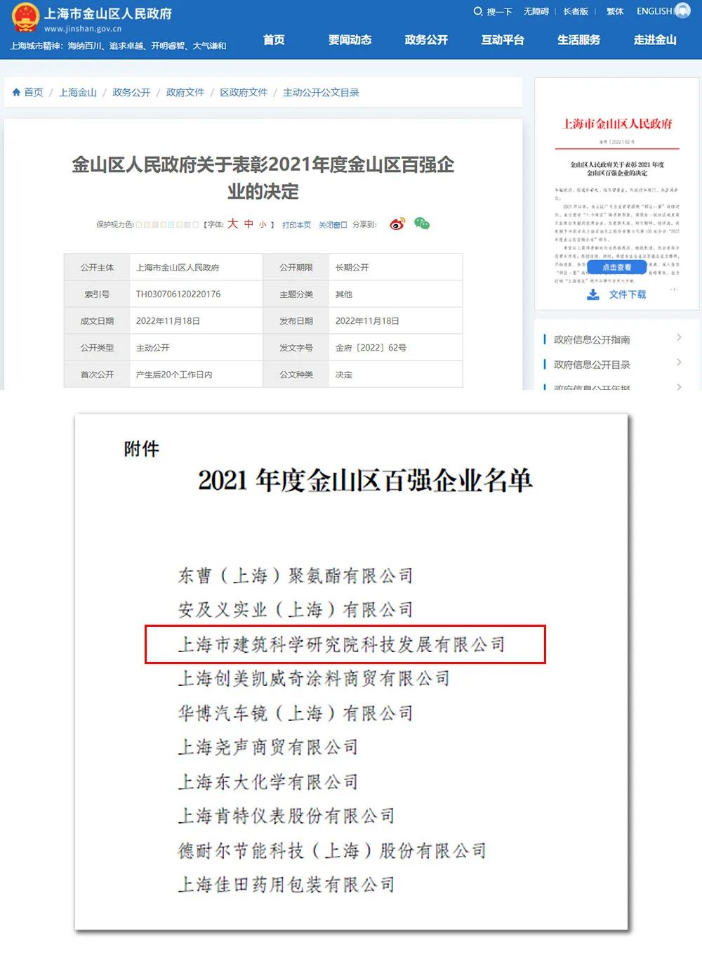 2021年以來(lái),為促進(jìn)金山區(qū)經(jīng)濟(jì)平穩(wěn)健康發(fā)展、緊緊圍繞“兩區(qū)一堡”戰(zhàn)略定位,全力塑造“三個(gè)灣區(qū)”城市新形象,涌現(xiàn)了一批對(duì)區(qū)域發(fā)展作出突出貢獻(xiàn)的優(yōu)秀企業(yè)。上海市金山區(qū)人民政府為表彰先進(jìn)、樹立榜樣,授予此類企業(yè)“2021年度金山區(qū)百?gòu)?qiáng)企業(yè)”稱號(hào),上海市建筑科學(xué)研究院有限公司下屬上海市建筑科學(xué)研究院科技發(fā)展有限公司成功榮獲該稱號(hào)。