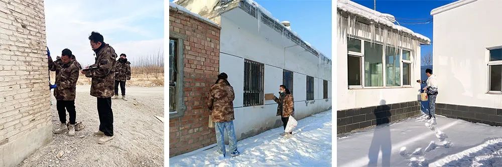 團隊克服零下20多度的低溫、各種復雜路況、大雪封路等重重困難,時常還要攜帶設備在雪地中徒步好幾公里,每天工作十余小時,縱跨天山南北,途經中哈邊境,走遍了半個新疆,完成了20多個農場房屋的現場檢測。