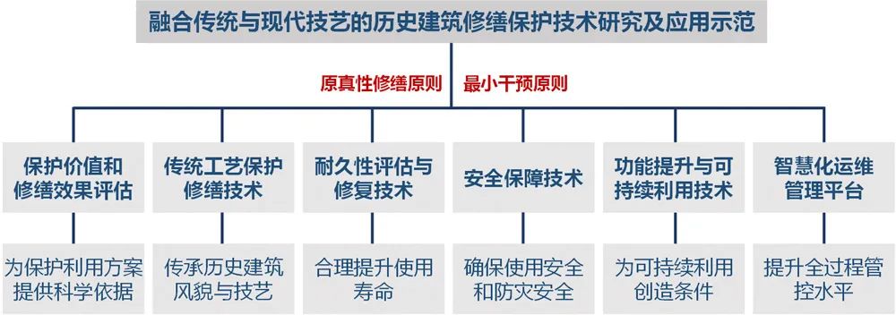 專家組聽取了項目組的匯報,高度肯定了該項目在歷史建筑保護價值綜合評估方法、基于傳統工藝的保護修繕、結構耐久性評估與修復、基于最小干預原則的安全保障、功能提升與可持續利用等關鍵技術等方面取得的研究成果,一致同意該項目通過綜合績效評價。