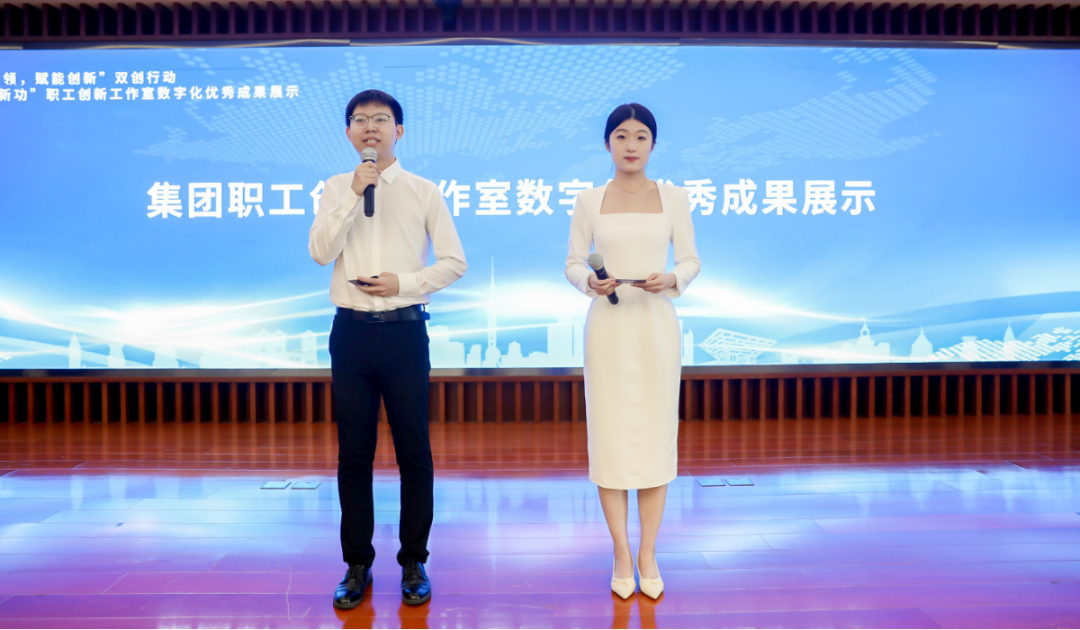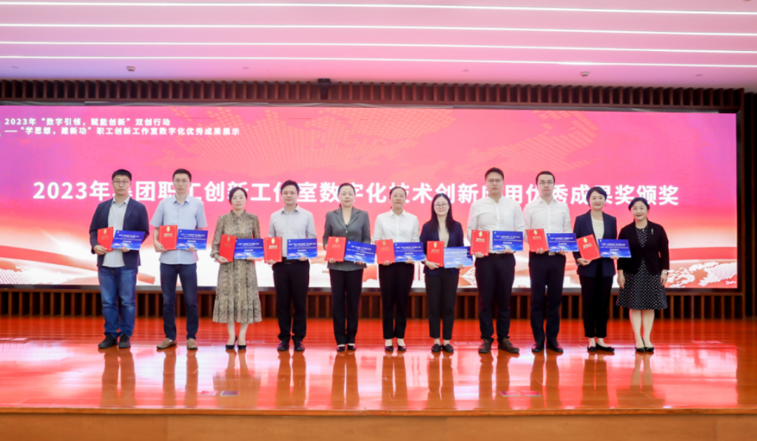 集團副總裁江燕宣讀了2023年集團職工創新工作室數字化技術創新應用比賽優秀成果獎的獲獎名單,并為他們頒獎。