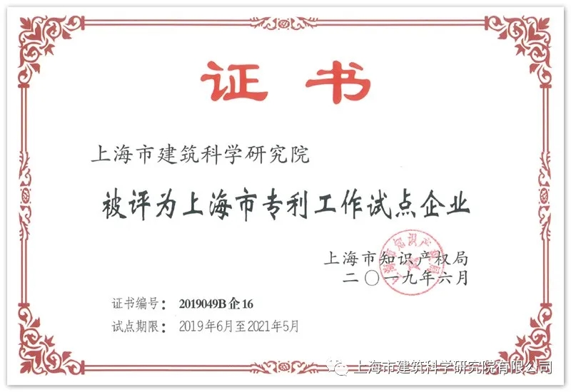 上海建科院緊扣政策導向,結合企業內生發展需求,近年來在知識產權創造質量和運用管理水平上持續發力。近三年申請專利148余項,獲得授權專利70項,獲得軟件著作權46項,并于2019年獲評“上海市專利工作試點企業”。