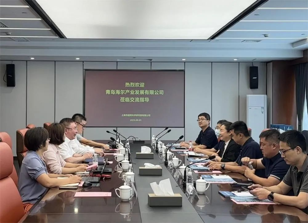 9月1日,青島海爾產業發展有限公司副總經理張莉,COE總監劉長健,總工程師張華海及工程總監、設計總監、IT負責人、戰略投資經理一行,來訪上海市建筑科學研究院有限公司進行調研交流。建科院黨委副書記、總經理趙榮欣出席接待,市場部及綠色節能與低碳創新研究院相關同事參會交流。會議由趙榮欣主持。