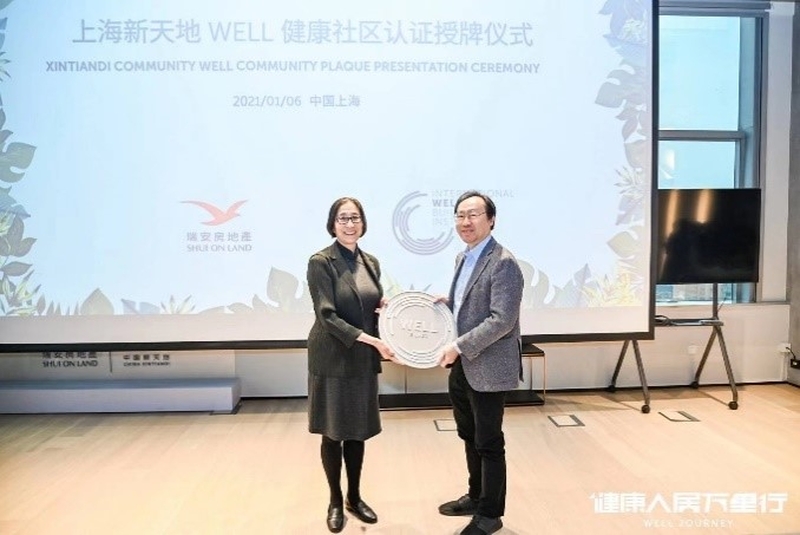 在本年度首次健康人居萬里行活動中,IWBI為全球首個獲得WELL健康社區標準認證的上海新天地舉行了授牌儀式。