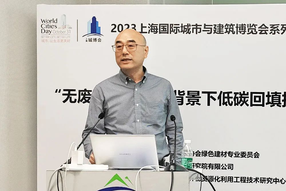 10月30日下午,“2023上海國際城市與建筑博覽會”系列論壇之“‘無廢城市’建設背景下低碳回填技術”分論壇在上海世博展覽館順利召開。該論壇由上海市綠色建筑協會綠色建材專業委員會、上海市建筑科學研究院有限公司和上海工業固體廢棄物資源化利用工程技術研究中心共同主辦。上海市住房和城鄉建設管理委員會建筑節能和建筑材料監管處孫堅副處長受邀蒞臨論壇并致辭,上海建科院建筑材料與固廢利用研究所所長陳寧主持論壇,來自管理部門、科研院所、高校、生產企業、施工企業的60余名代表參加了此次論壇。