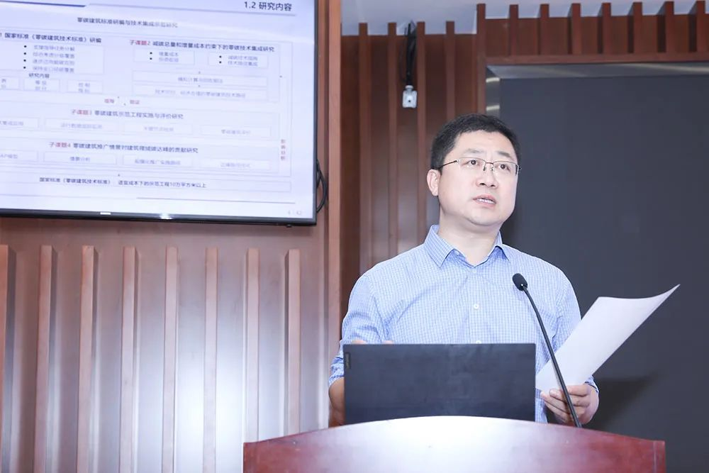 上海市建筑科學研究院有限公司教授級高工楊建榮、中國建筑科學研究院有限公司副研究員孫德宇、北京石油化工學院副校長王偉、中國建筑節能協會副秘書長付宇、中國建筑科學研究院有限公司研究員張時聰作為課題負責人介紹了各課題的整體進展情況和階段研究成果。專家和項目負責人分別針對各課題研究現狀和后續實施進行了點評和指導,從課題和子任務間研究成果的統籌關聯、示范工程與研究成果的有機結合、考核成果的時效性和經費進度等方面提出了指導性意見和建議,對項目的高質量推進具有重要指導作用。