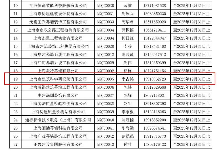 2023年上海市既有建筑幕墻現場檢查服務企業名單入圍