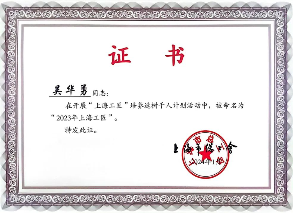 近日,在大國工匠王曙群先進事跡報告暨2023年上海工匠樹選命名大會上,100名“上海工匠”被命名并獲頒“上海工匠”大銅章及證書,上海市建筑科學研究院有限公司院吳華勇榮獲2023年“上海工匠”稱號。